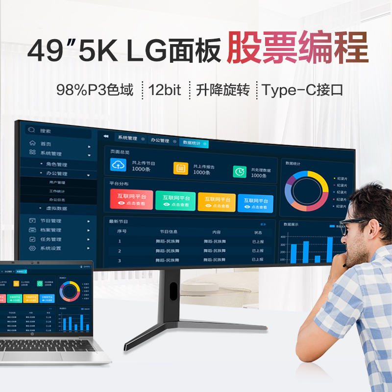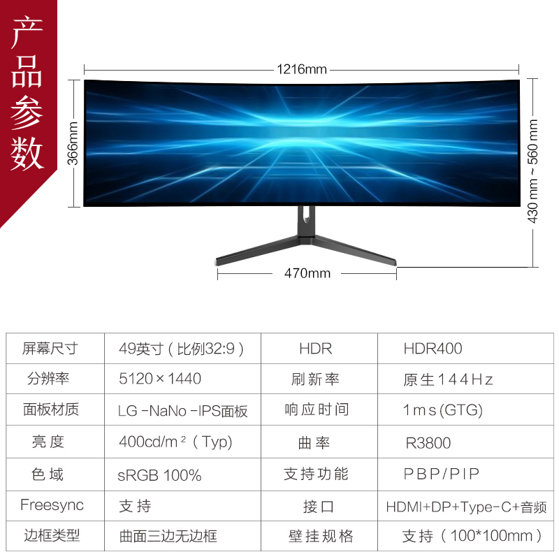 产品描述:采用原装LG面板,49英寸曲面带鱼屏HDR400,超宽环幕,光影实境,超大视野,带来震撼观感!更大屏幕可视区域比34英寸多约51%,快人一步,抢占先机人体工学底座灵活调节,双轴十向,应对自如;先锋环幕设计,32:9超宽比···