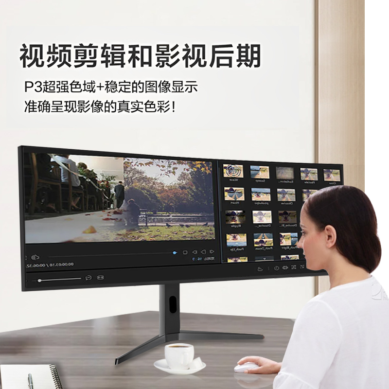 3、接近剧场画面比例,制作专属迷你影院。如果能找到21: 9的片源,带鱼屏显示器看电源很爽,但这种视频源很少。如果电影是16: 9的片源,你的画面左右会有黑边,这是优点同时也是缺点。