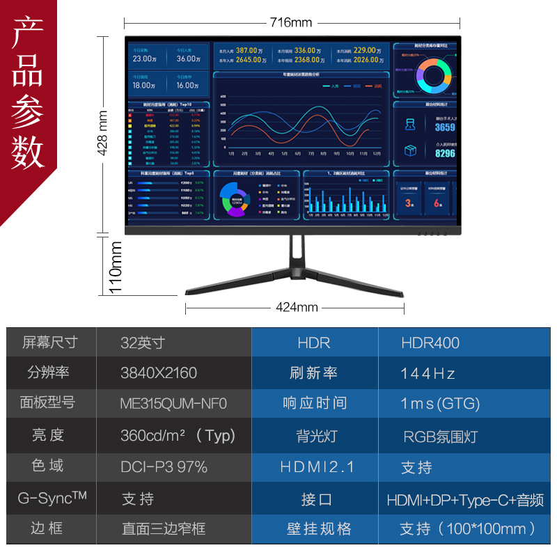 产品描述:高分辨率高刷新率,兼顾办公游戏,HDMI2.1接口支持PS5